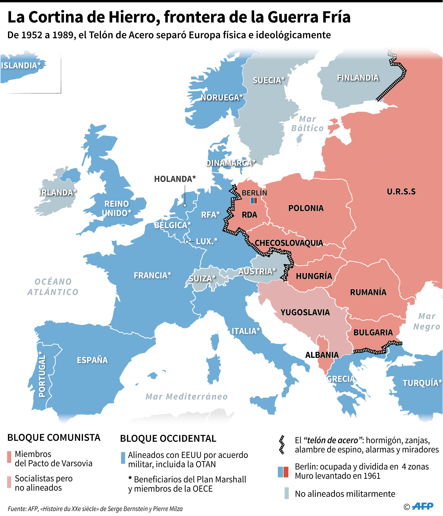 Sin ir más lejos, La URSS sometió a Berlín a un bloqueo de casi un año entre 1948 y 1949. La población se salvó de morir de hambre gracias a un puente aéreo occidental que cada cuatro minutos hacía llegar un avión con suministros a la ciudad. Asimismo, en 1953 el régimen de la RDA aplastó una huelga de trabajadores que demandaban mejores condiciones laborales.