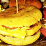 La arepa con relleno de carne de res, pollo o pescado blanco, una selección de vegetales (lechuga, tomate, cebolla y pimentón salteados, aguacate) y salsas (mayonesa, tomate, mostaza, maíz, queso, barbecue, tártara especial, tocineta, curry, mostaza dulce).