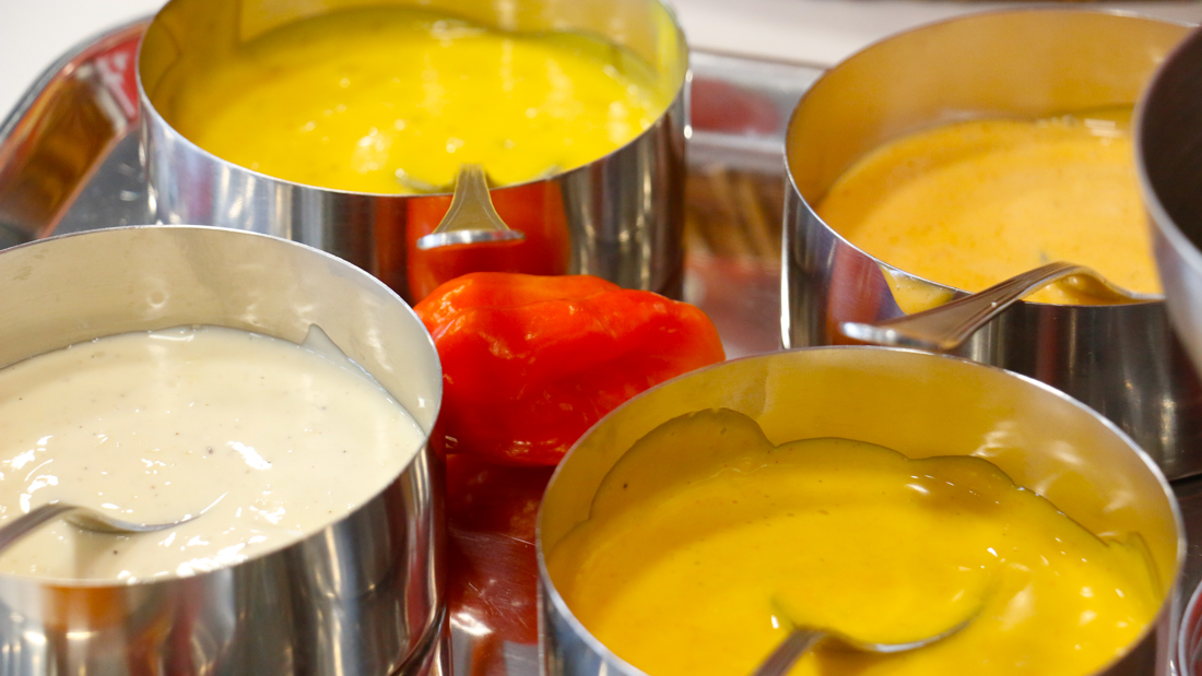 A ellas se les suman las salsas de tocineta ahumada, con decidido sabor a parrilla; mayo picante, elaborada con ají venezolano; mostaza con miel; ranch y césar, cuya base es una mayonesa elaborada por ellos mismos en la planta, salsa zesty (algo especiada) y teriyaki.