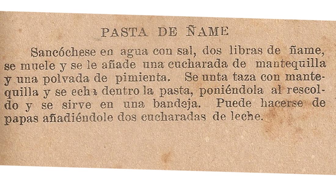 Al zambullirme en los recetarios de principios del siglo pasado, encuentro varias preparaciones elaboradas con ñame, un tubérculo que ha regresado a la mesa no por razones meramente gastronómicas sino debido a los altos costos de la cesta alimentaria. Utilizado en sancochos, hervidos, cruzados y siempre en compañía de otros tubérculos similares, me pareció menester rescatarlo del olvido y presentar algunos de los platos más interesantes o particulares donde es protagonista.