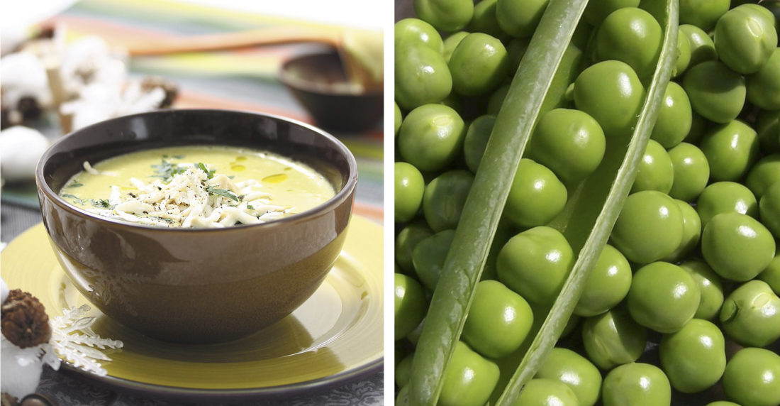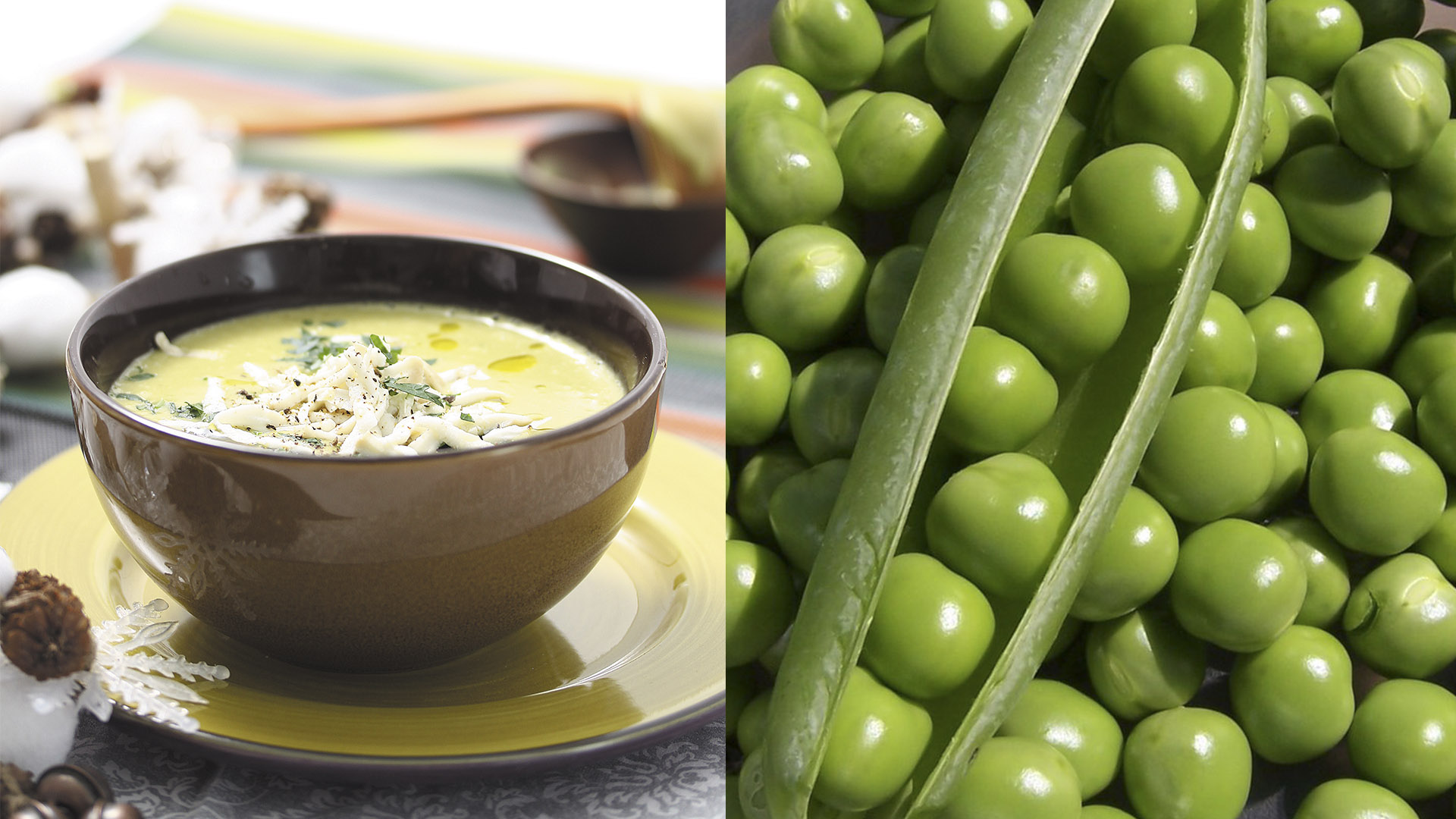 1. Coloque las arvejas y la cebolla en una cacerola con ½ taza de caldo de verduras. Hierva el caldo, baje la temperatura y cocine a fuego lento hasta que las arvejas se hayan cocido.
