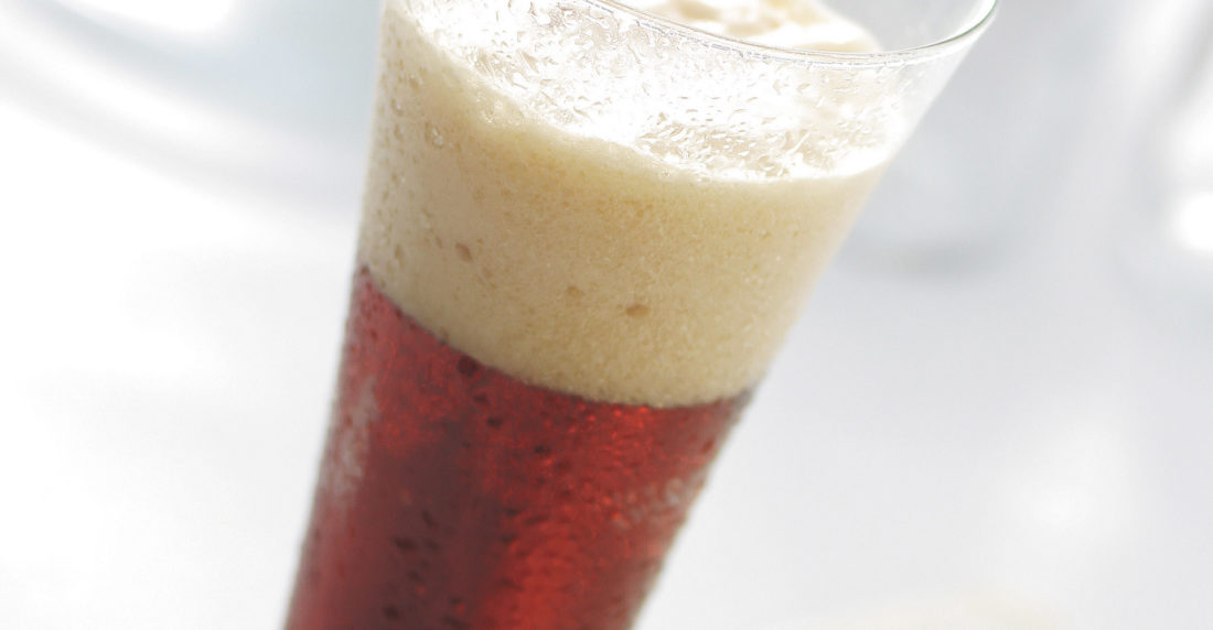 1. En un vaso Collins —copa alta— agregue la cerveza. Luego, complete con la champaña.