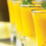 Shot de crema de auyama y zanahoria con gelée de vino blanco