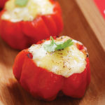 3. Divida el relleno entre todos los ajíes. Transfiéralos a una bandeja refractaria para hornear.