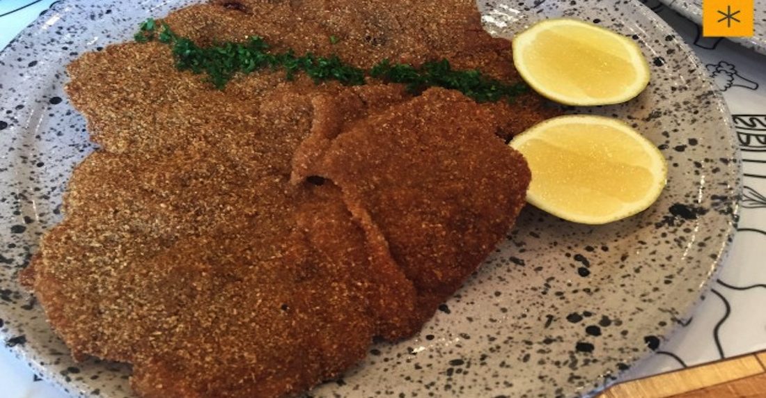 Y, por si no conoces el proceso, te lo contamos: La carne sazonada y finita se pasa por huevo y luego pan rallado. Se fríe unos minutos hasta que esté dorada y crujiente pero no quemada. Se seca en papel absorbente y se come calientica.