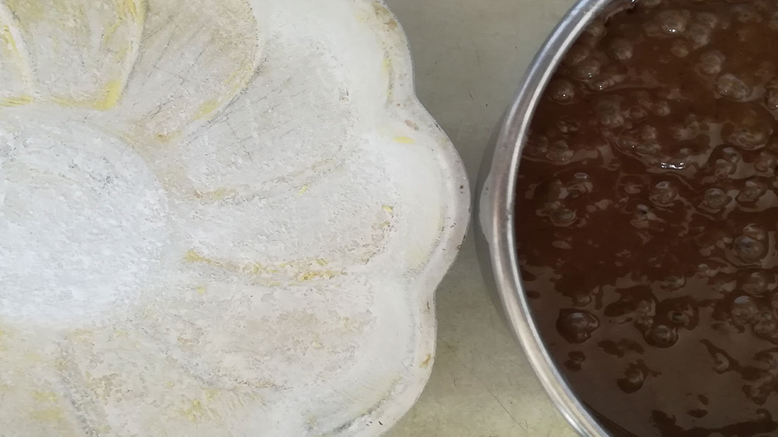 Finalmente, agregar la goma xanthan y batir hasta lograr una mezcla importante. Engrasar y enharinar un molde.