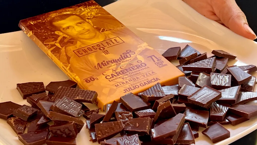 Desde Las Tejas, al igual que Rubén Escobar, Francisco Taguaripano aporta al panorama del cacao de Barlovento sabores dulces y cálidos que da notas de cambur, plátano y miel.