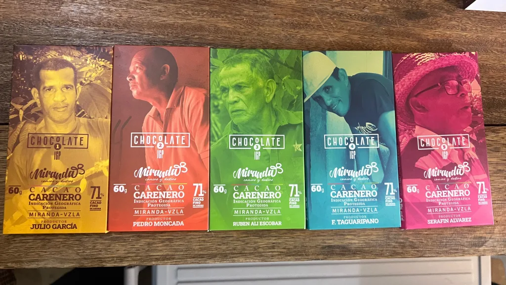 Estos productores, que ahora cuentan con IGP que le aporta identidad a sus cacaos son Serafín Álvarez, Rubén Alí Escobar, Francisco Taguaripano, Julio García y Pedro Moncada. Este certificado no es permanente y debe renovarse anualmente mediante estrictos controles y evaluaciones, lo que asegura el compromiso continuo con las buenas prácticas agrícolas.