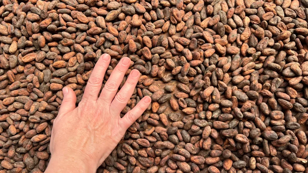 Secado. Los granos, una vez fermentados, se secan para reducir la humedad.