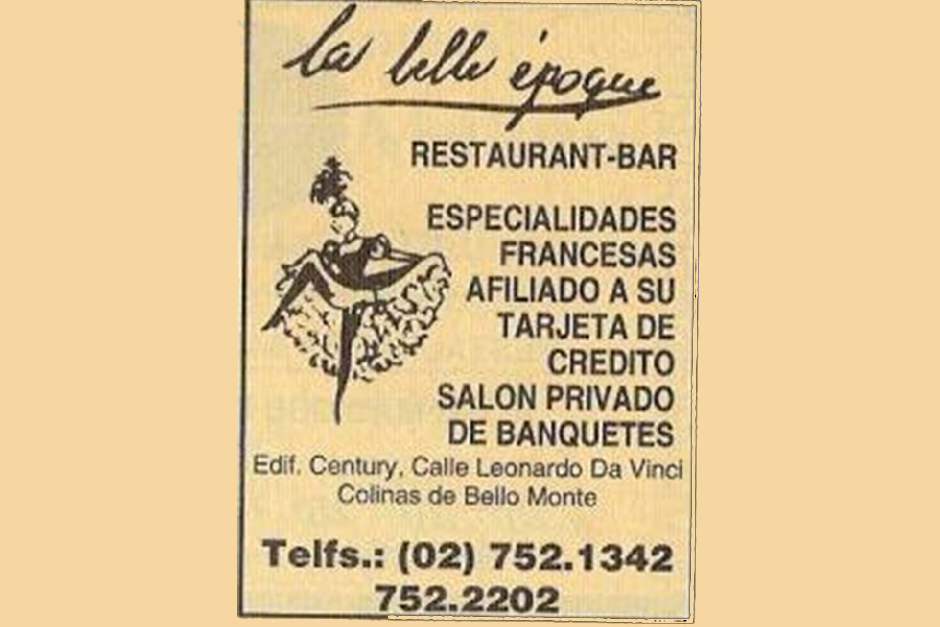 Las cocinas de Amadeo, La Belle Epoque, Héctor´s, Gazebo, Aventino, Gala, Patrick, Le Groupe, Lasserre, La Bastille, Bagatelle, The Chic Ambassador, Member´s, Primi, La Rotisserie, Visconti, Old Fashion, Le Chantilly, Vizio, Le Gourmet y Lasserre, entre otros, todos desaparecidos a excepción del último, conocieron la opulencia, los buenos tiempos e incluso algunos los secretos de esos chefs que vinieron a Venezuela para hacerse la América.