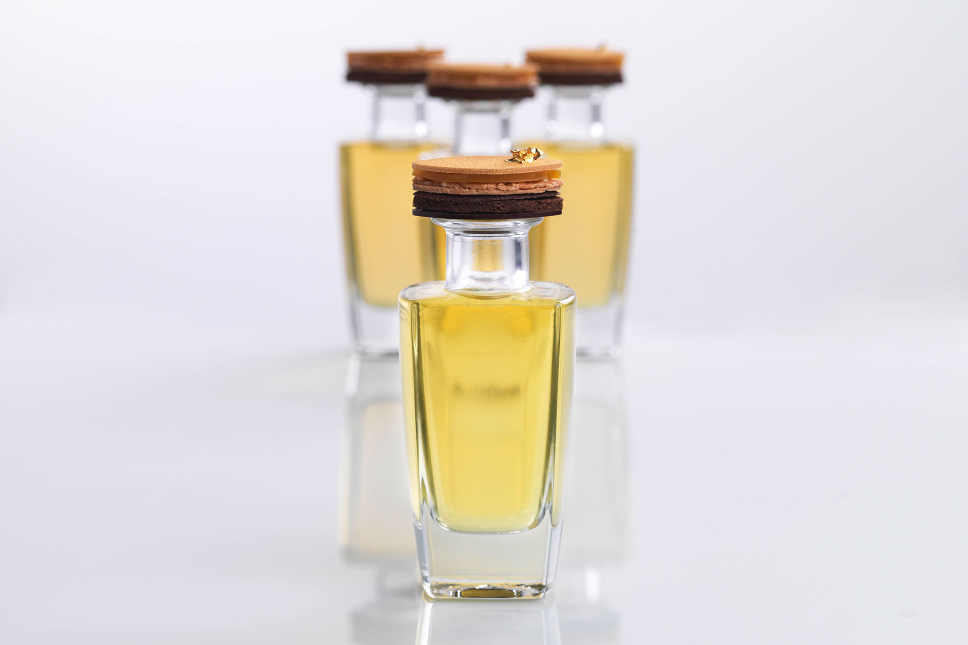 El petit four tenía siete capas. Así que, tanto el postre como el petit four lo hicimos como si estuviéramos construyendo un perfume.