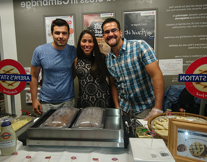 Tres venezolanos y nuestra simbólica arepa, con múltiples sabores son aceptados en el mercado multicultura de Cambridge, Reino Unido