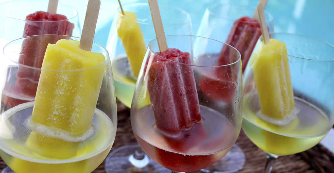 3- Paletas de champaña y frutas: vierte champaña en moldes de paleta, corta en pequeños trozos las frutas de tu preferencia, congélalas y ¡listo!