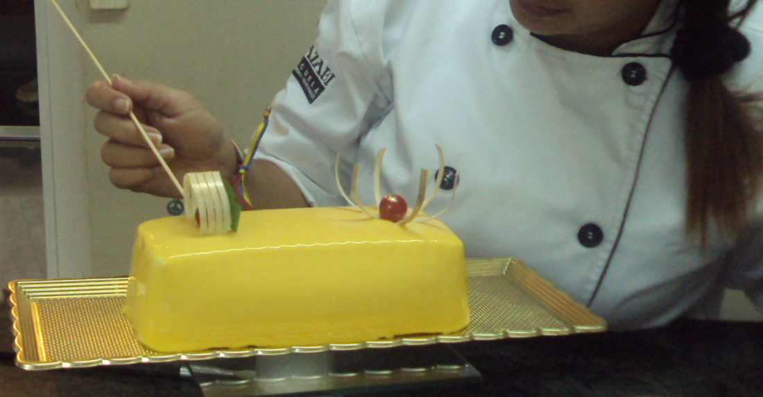 Dentro de los productos que destacaron por su sabor y presentación destacó una mousse de chocolate y parchita con un arrollado, tipo bizcocho en su interior, relleno de arequipe con glaseado espejo de chocolate.
