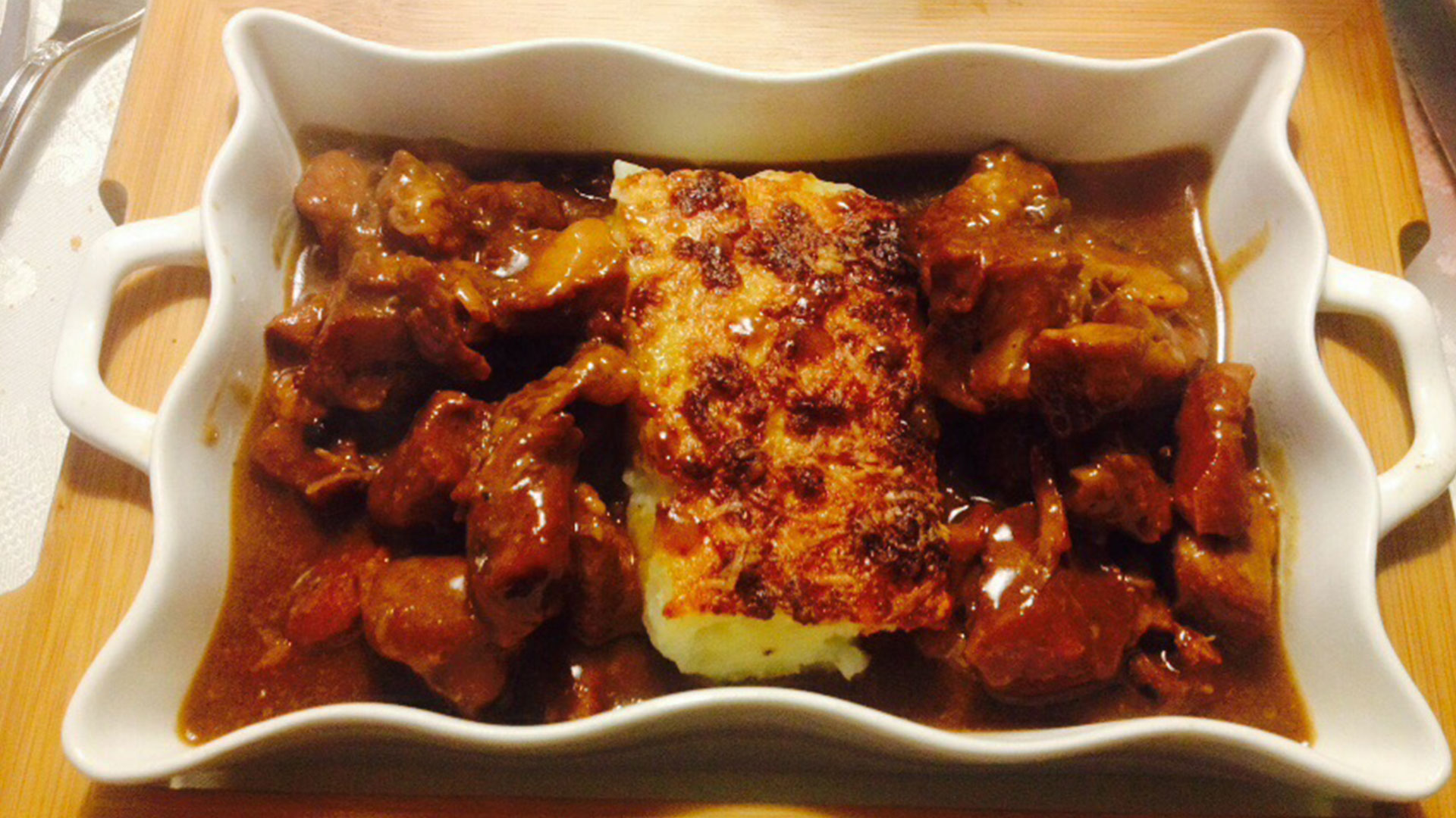 Luego, un ragout de venado con soufflé de papas que estaba del otro mundo. La carne de venado muy suave y la salsa en su punto.