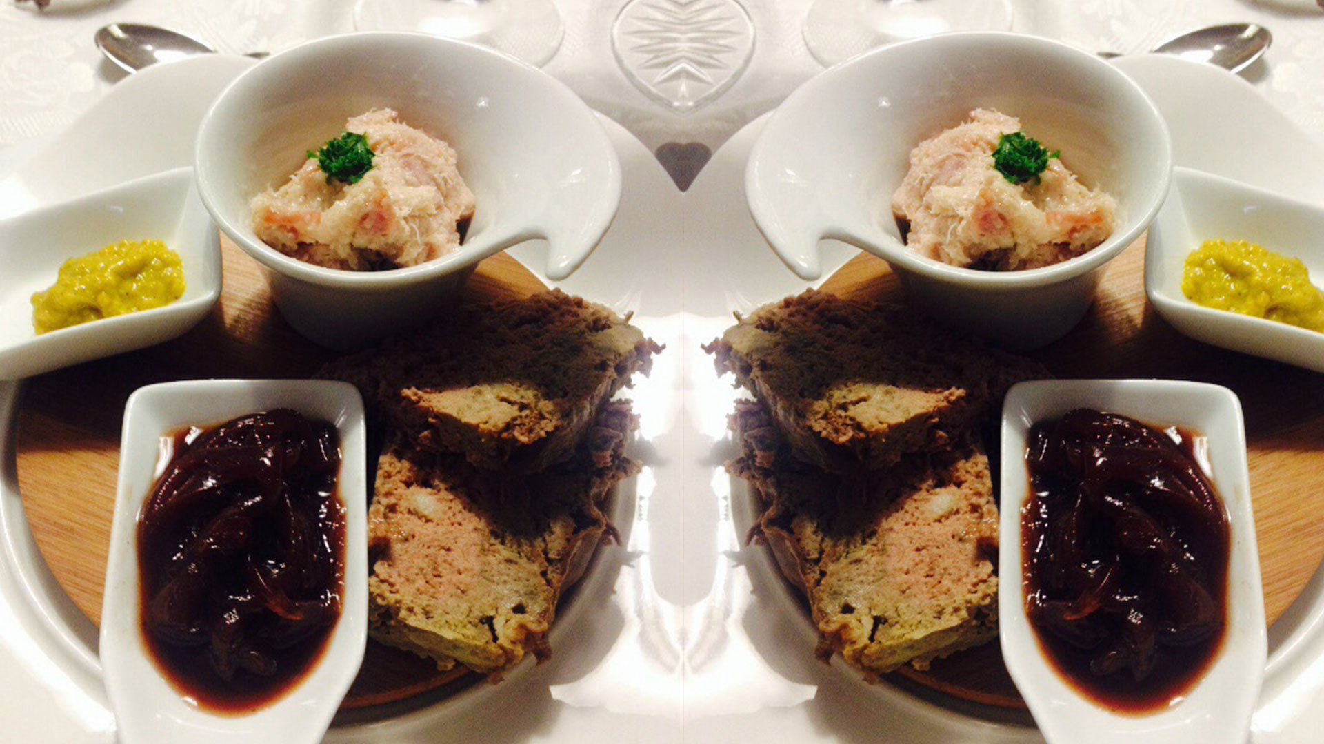 Para comenzar, una degustación de pâtés acompañada de una salsa de cebollas caramelizadas y otra de mostaza.