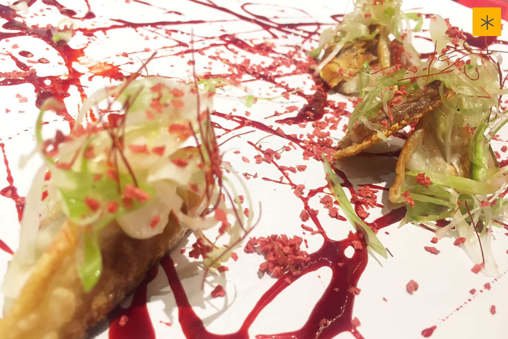 Los «baos» que por estos tiempos marcan tendencia en España, también dicen presente así como los dumplings fritos, originalmente servidos sobre un individual blanco que da dolor comerlos porque parece una obra de arte.