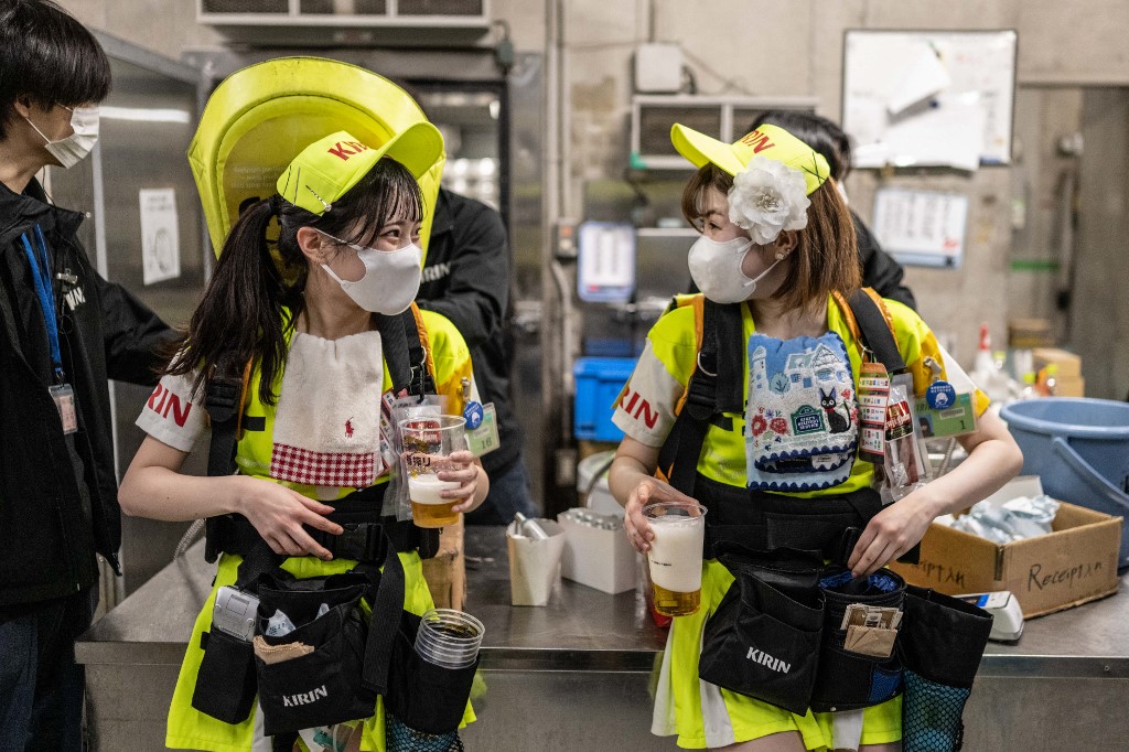 El centenar de vendedoras del Tokio Dome sirven unos 20.000 vasos por partido.