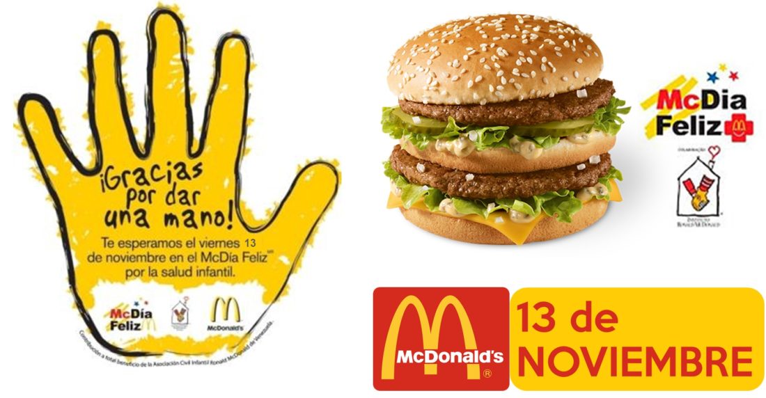 McDonald’s celebra el McDía Feliz, una jornada en la que lo recaudado por la venta del Big Mac se destinará a la Asociación Civil Infantil Ronald McDonald de Venezuela, dedicada desde hace más de 10 años a mejorar la salud y el bienestar de los niños, a través de su programa Casa Ronald McDonald Baruta.