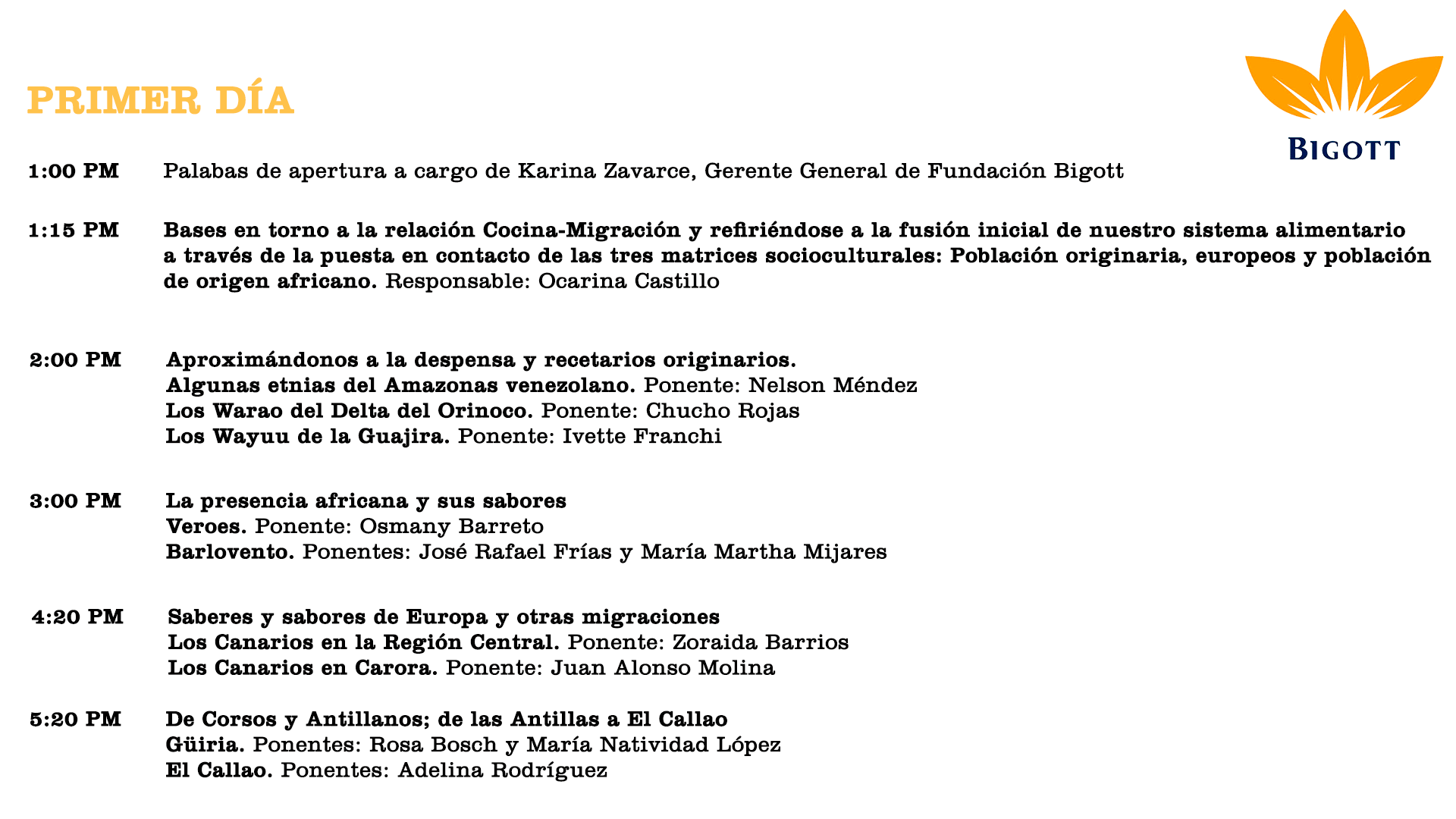 En este sentido, la temática del encuentro parte de la consideración de las tres matrices socioculturales que integraron la sociedad venezolana y cultura colonial: la población originaria, la presencia europea (especialmente hispánica) y el aporte africano a través de la población sometida a condiciones de esclavitud. A partir de allí, y con la participación de investigadores, chefs y cocineros, se examinarán algunas de las más importantes migraciones que a lo largo del proceso histórico han contribuido en materia de saberes, ingredientes, tecnologías, recetas, platos, procedimientos y utensilios en las culturas y gastronomías regionales del país.