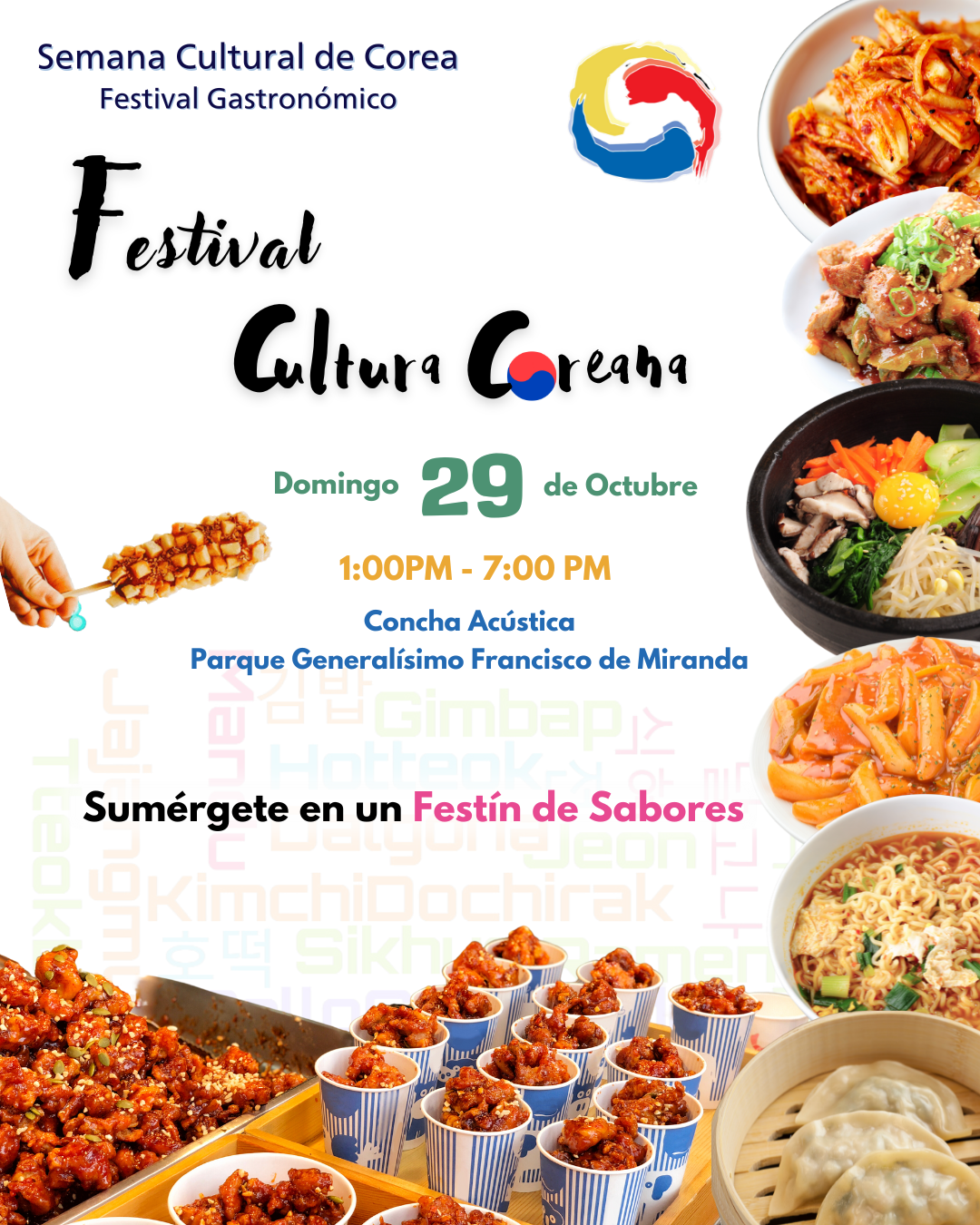 Gracias a las series y a las manifestaciones culturales coreanas que han permeado nuestra sociedad, ya se nos hacen conocidos los nombres de kimchi, bibimbap, ramyeon y kimbap, entre otros, que forman parte de la comida tradicional de Corea del Sur. Estos sabores serán protagonistas, por un domingo, en el Parque del Este, gracias al Festival de Cultura Coreana.