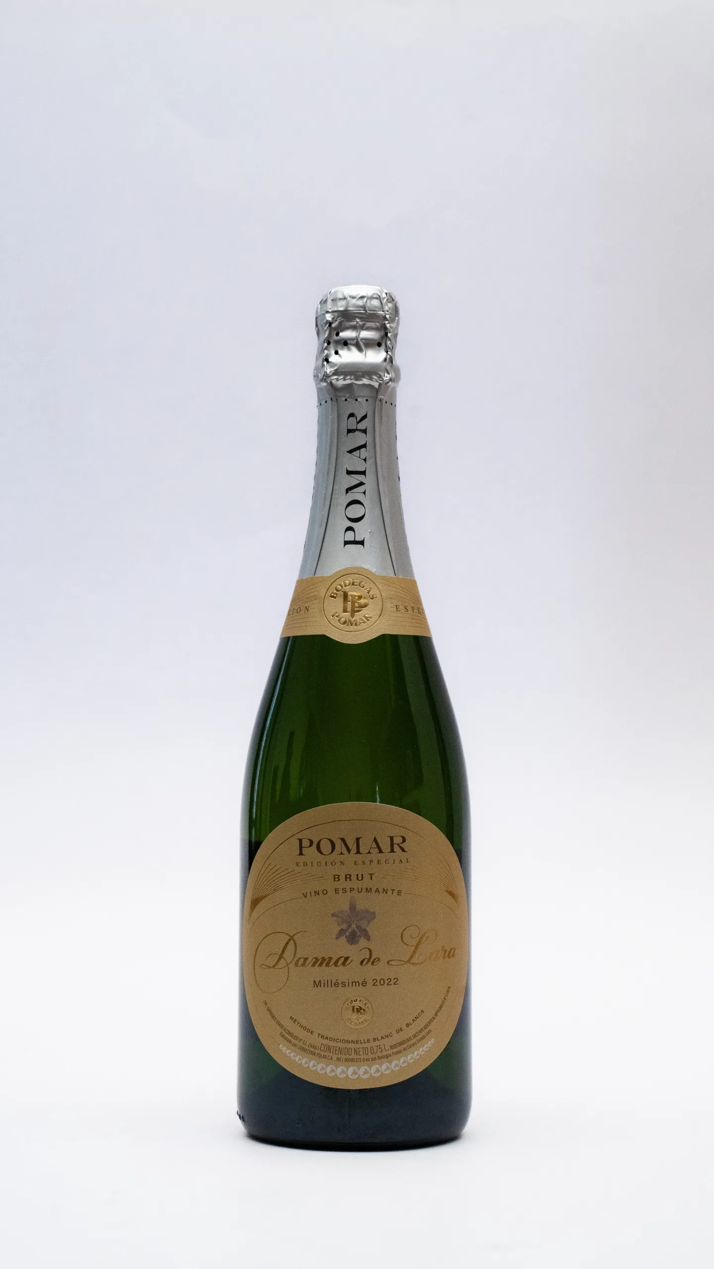 Leonor Giménez de Mendoza ha estado detrás de esta iniciativa y por ello inspiró la creación de un espumante excepcional, que se presenta bajo el sugestivo nombre de Dama de Lara. Se trata de un Millésimé cosecha 2022, considerado sobresaliente. Este Brut, cien por ciento Chenin Blanc, ofrece frescura, aroma floral, límpido y de constantes burbujas, donde el sello Pomar, presente en el cintillo y el logotipo, garantiza la autenticidad del método tradicional.