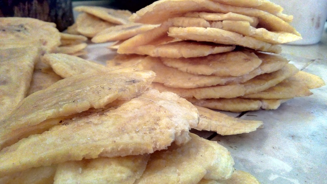 Primero se debe comprar un plátano verde muy grueso. Después, quitarle la concha y cortarlo en rebanadas longitudinales. Es decir, de punta a punta. Freír y, cuando estén a medio hacer, retirarlos y aplastarlos con una tabla de picar. Por último, pasarlos por agua y sal y freírlos nuevamente.