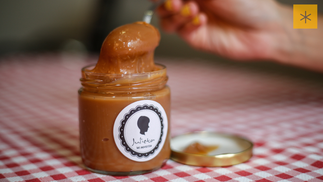 En Bienmesabe probamos el dulce de leche y la mermelada de fresa con trozos. Ambos son casi adictivos por la textura consistente y el dulzor que no empalaga, sino que endulza lo suficiente como para seguir untando.