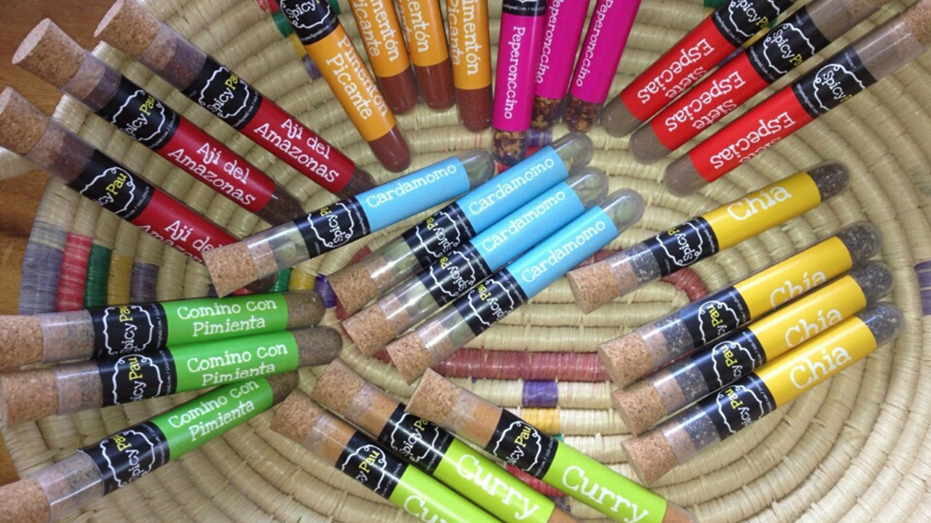 SpicyPau también cuenta con diferentes especias envasadas en tubos de ensayo, que incluyen especias del mundo y un aguerrido ají molido del Amazonas para paladares atrevidos.