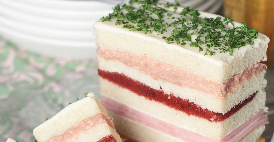Para servir, corte el sanduchón en rebanadas de 2 cm. de grosor y decore con perejil fresco finamente picado. Este plato es perfecto para acompañar meriendas y piñatas.