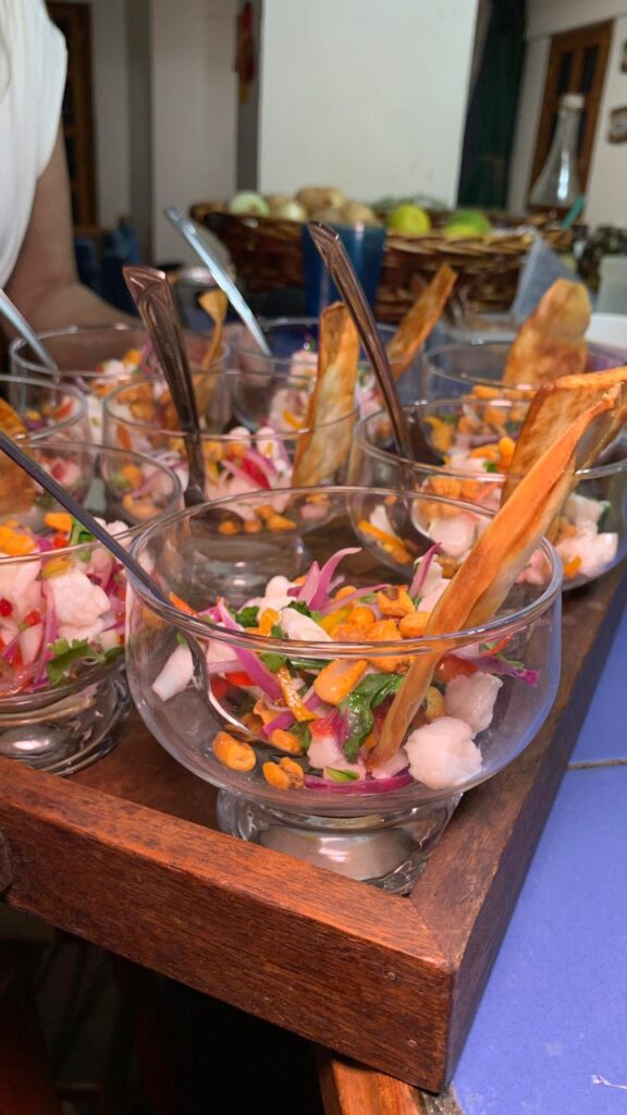 Ceviche de pargo con crocante de batata y maíz tostado. Foto: Daniela Malavé.