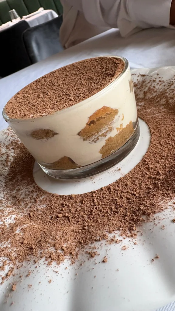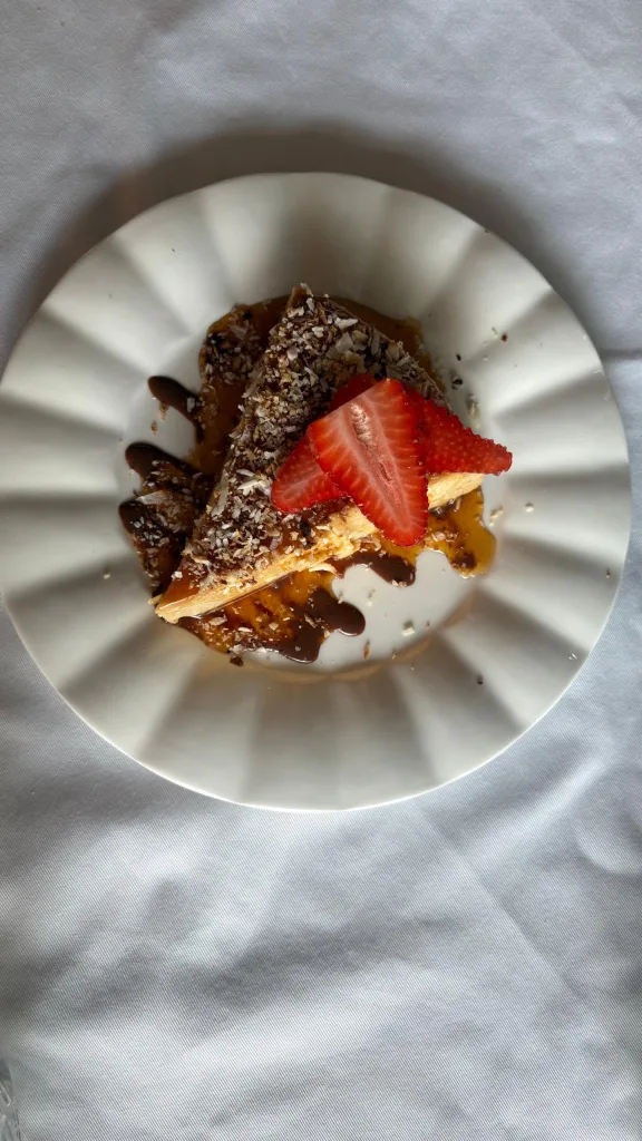 En los postres la tendencia es italiana, con gelati, tiramisú tradicionales y de pistacho y una panna cotta de pistacho, galletas Lotus y frutos rojos (una oda a los sabores en tendencia en redes sociales) pero hay un postre muy venezolano que no se deberían perder: el quesillo de coco con topping de fresas frescas.