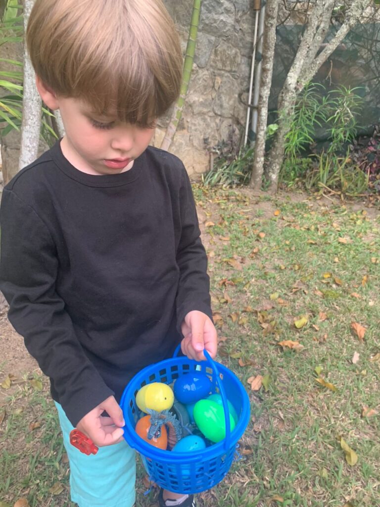 En Venezuela, cada vez es más frecuente que los niños busquen los huevos escondidos por el jardín o por la casa. Foto cortesía de María Emilia Salgado / Modelo: Joaquín Cremades