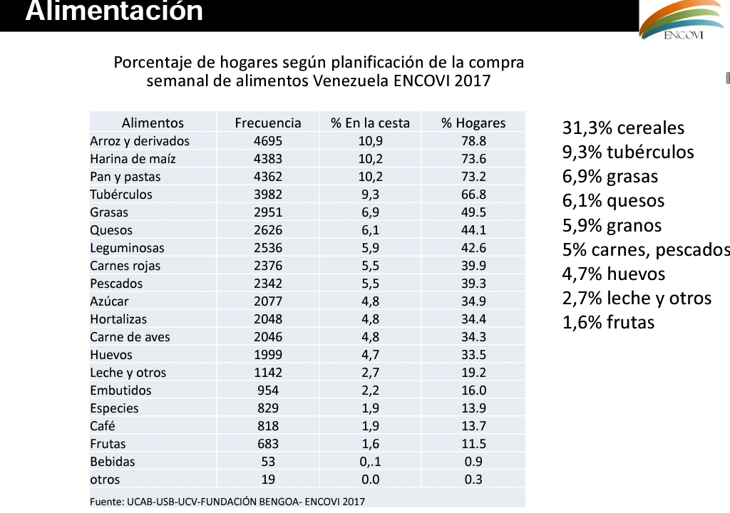 ovsalud.org / cuidateplus.marca.com / proteinas.org.es / fundacionbengoa / Encuesta Nacional de Condiciones de Vida Venezuela 2017. ENCOVI MaritzaLandaeta-Jiménez (Fundación Bengoa), Marianella Herrera Cuenca (Fundación Bengoa, CENDES-UCV), Guillermo Ramírez y Maura Vásquez (UCV)
