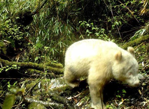Un raro ejemplar de oso panda completamente blanco fue fotografiado en una reserva natural en el suroeste de China, lo que demuestra que el albinismo existe entre los pandas en libertad en la región.