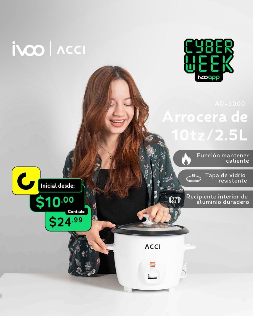 Desde este lunes 2 de diciembre, algunos productos seleccionados del área de electrodomésticos y tecnología estarán en promoción por la Cyber Week. Puedes realizar tus compras a nivel nacional en las sucursales IVOO de tu preferencia, y puedes optar por utilizar Cashea como forma de pago. También puedes encontrar los productos en promoción a través de la IVOO App y buscar tu compra de forma pick-up en la sede que desees.