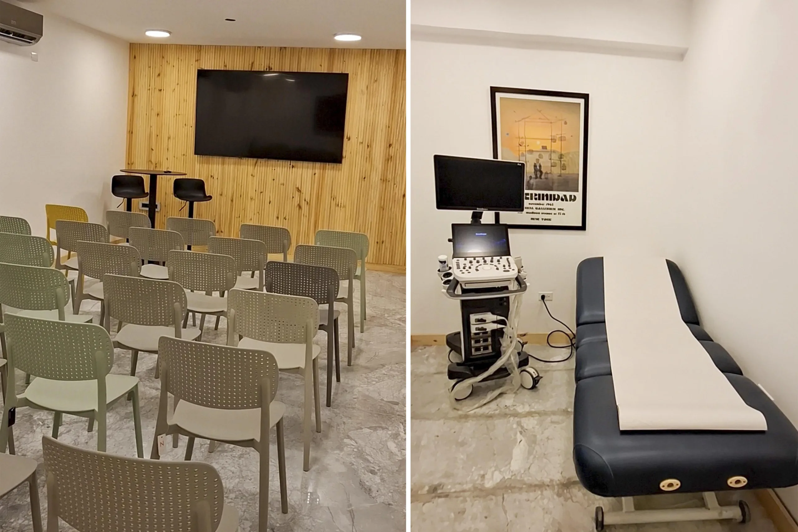 El edificio consta de consultorios para la atención de pacientes, sala de conferencia, salones de clases, auditorio y la biblioteca Josep Lanes, que tiene un extenso catálogo de bibliografía especializada, recopilado durante estos últimos tres años.