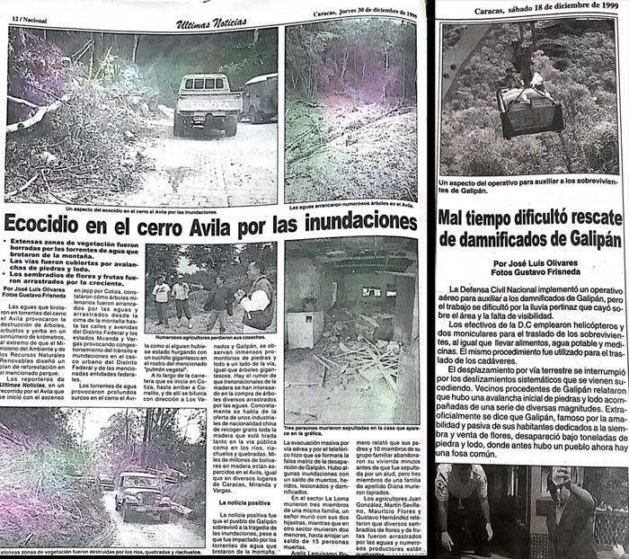 Urdaneta recuerda que fueron cuatro días de arduo trabajo en Galipán. En principio la prensa no reseñaba lo que pasaba en el parque nacional, sino hasta el sábado 18 de diciembre cuando en televisión, radio y periódicos se dio a conocer que “efectivos de la Guardia Nacional, Policía Metropolitana, Inparques, Bomberos, Cruz Roja y equipo de médicos y paramédicos voluntarios” realizaban las labores de rescate de heridos.