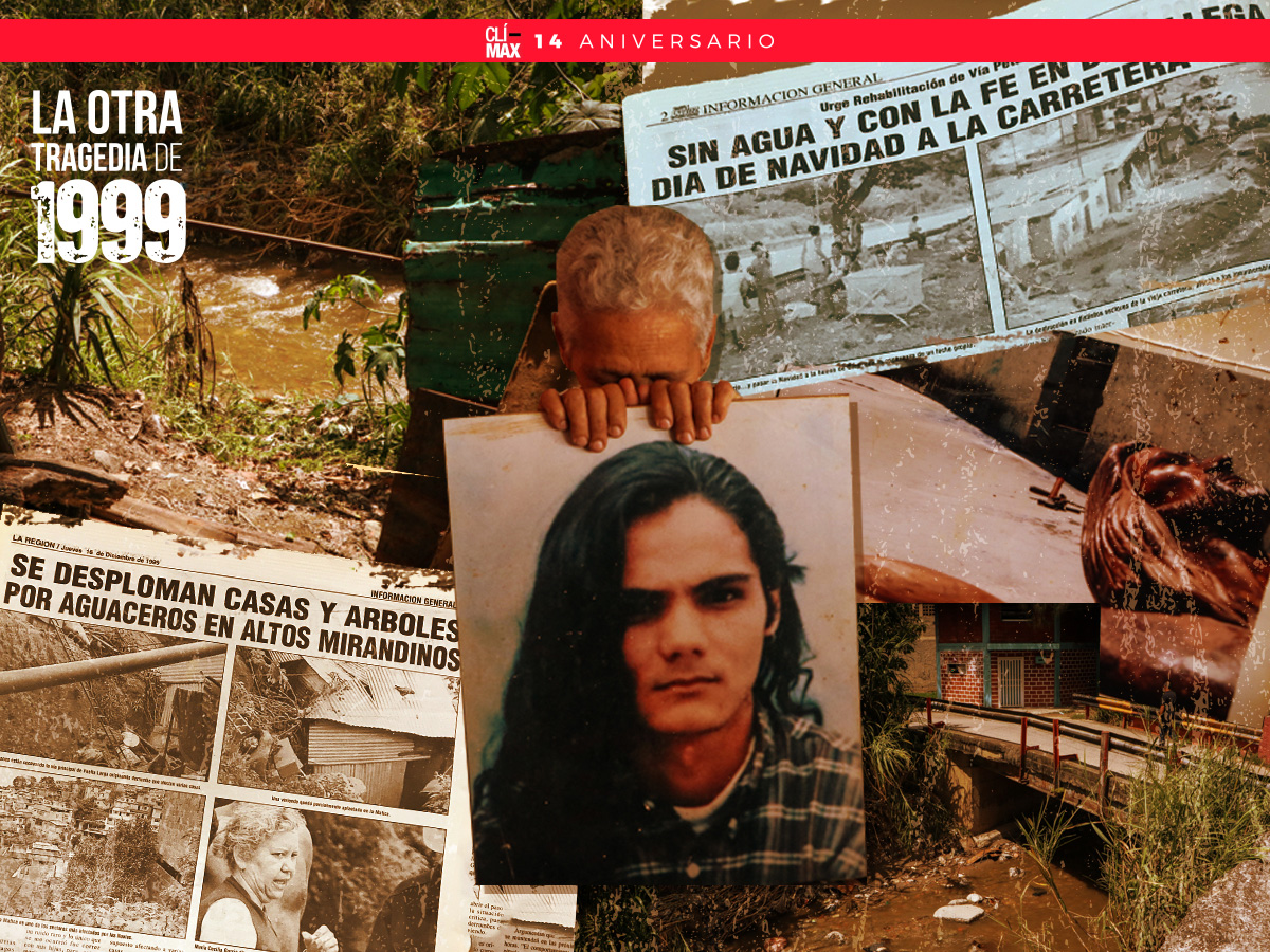 Lo que más recuerda Reinaldo Torres era la desesperación de sus familiares y vecinos del barrio La Línea, en Petare. Él solo tenía 12 años en diciembre de 1999, cuando las lluvias hicieron crecer el río Guaire y lo sacaron de su cauce. Llovió sin parar por más de 72 horas, día y noche. Todos pasaron jornadas enteras mirando por la ventana, pendientes de si escampaba un poco o si el nivel del agua seguía creciendo. La angustia de qué pasaba allá abajo, al final de la avenida, era la constante.