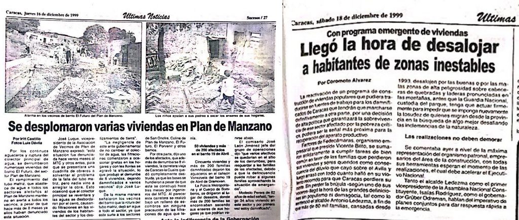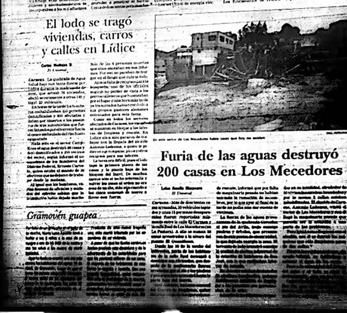 A muchos de los damnificados los llevaron al Poliedro de Caracas o a las iglesias en Catia, que fueron acondicionadas para atender a las víctimas. La familia de Arquímedes, que quedó sin nada, hasta sin documentos de identidad, se instaló por un tiempo en una casa alquilada en Los Magallanes de Catia, donde dormían en el suelo. Impactado por lo que había visto, el hombre pasó más de dos meses sin bajar a su zona. “Eso fue desastroso, muchas personas quedaron traumatizadas”.