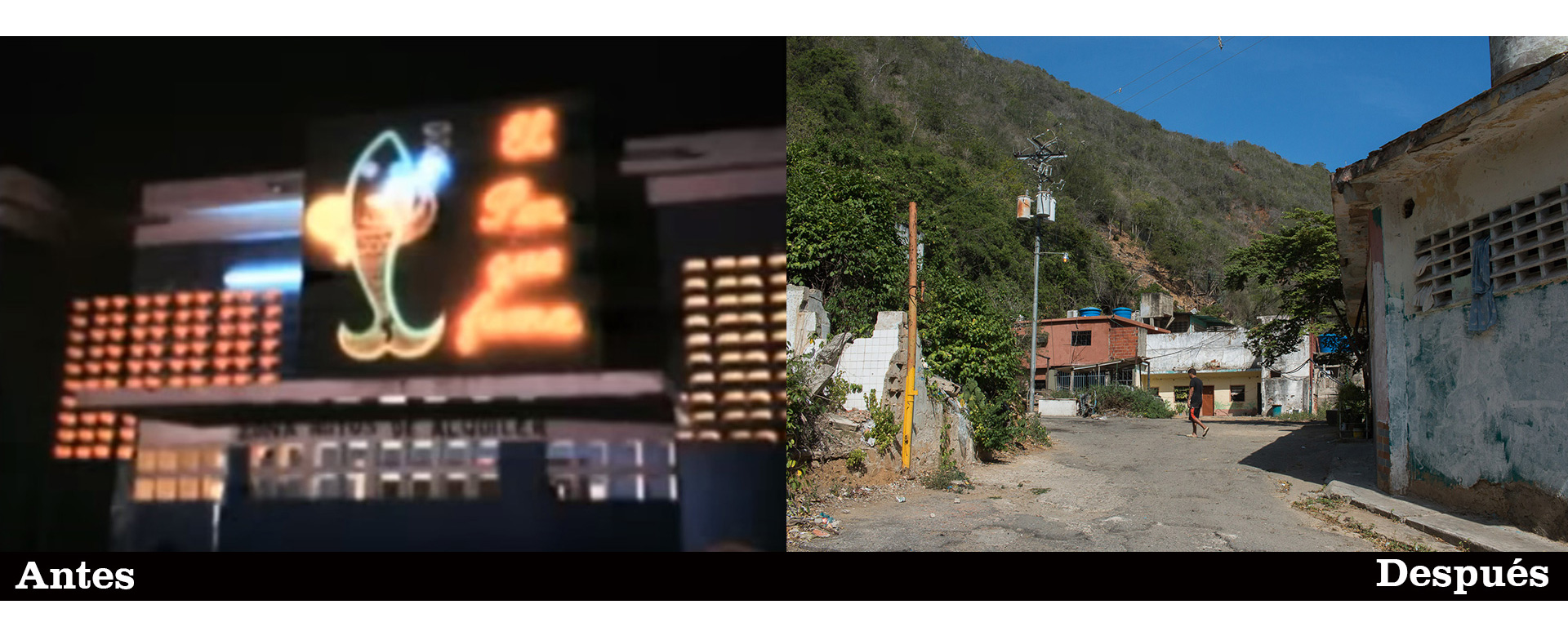 Allí, Román Chalbaud grabó en 1977 una de las obras más emblemáticas del cine venezolano, y allí mismo, apenas algunos restos de paredes se asoman hoy entre maleza, luego de que el deslave de 1999 hiciera estragos en la zona. Donde antes se erigían los cuartos, en los que Miguel Ángel Landa y Orlando Urdaneta se turnaron a Hilda Vera frente a las cámaras, ahora se mantienen en pie unas pocas casas, semiderruidas, que acumulan escombros y basura oxidada en su frente.