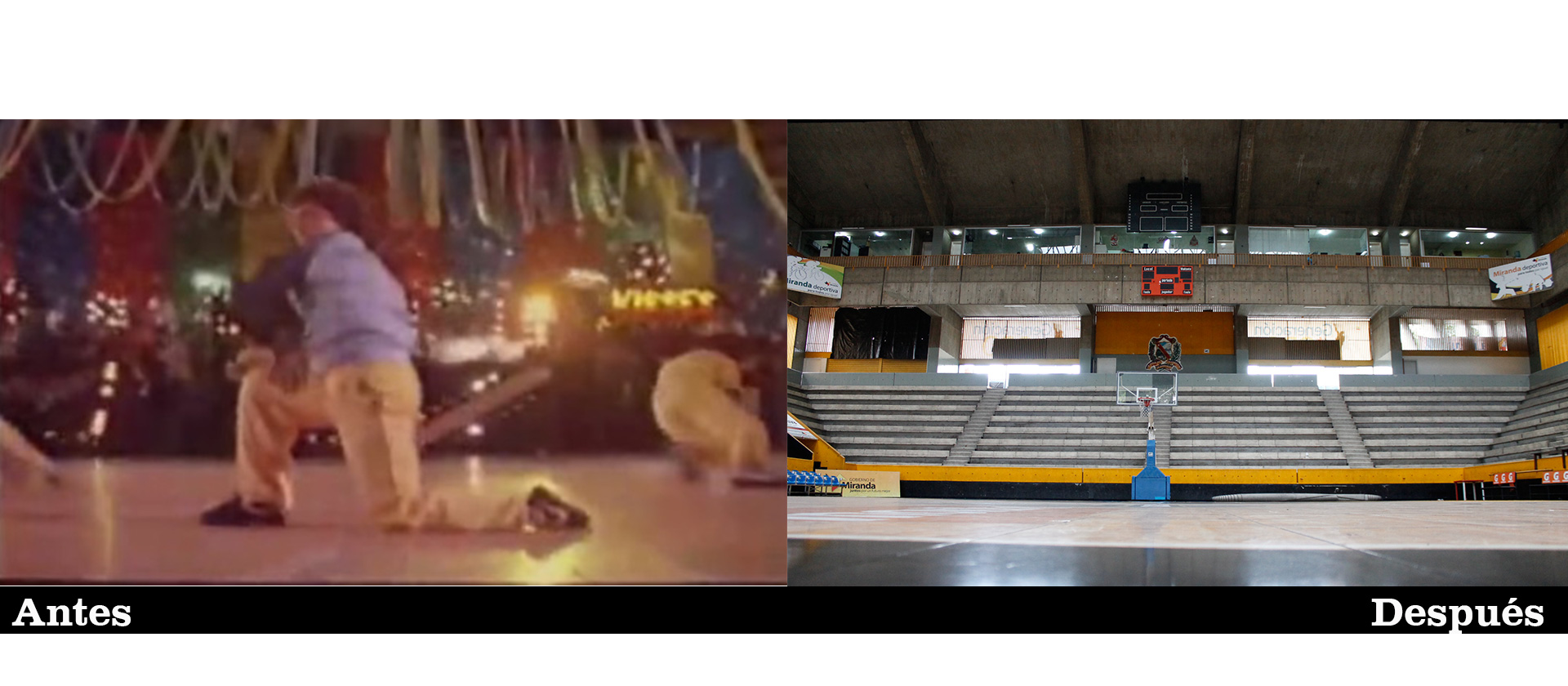 En la escena del enfrentamiento musical y coreográfico se leen nombre que sonarán familiares para quienes vivieron con consciencia los 80: Sandy Lane, The trop, New wave, Fahrenheit. Luces de colores, listones colgantes y muchos bailarines se apoderaron del –aún activo- Gimnasio Papá Carrillo en el Complejo Deportivo Parque Miranda, en Los Dos Caminos, que prestó su piso de madera para los resbalosos pero precisos pasos. En el complejo deportivo ya no se hacen fiestas, sigue albergando al equipo Panteras de Miranda y otras actividades deportivas y culturales de la Gobernación del estado.