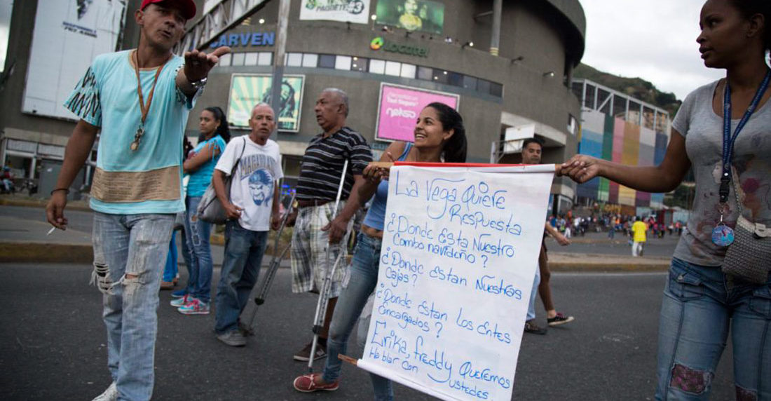 El 18 de diciembre, a un fin de semana de Navidad, manifestantes trancaron las vías de acceso vehicular hacia Montalbán, La Vega, El Paraíso y la avenida O’higgins. Cerca de las 6 de la tarde, se plantaron en la redoma La India y se quejaron por el retraso en la entrega de la bolsa CLAP. El panorama se repitió al este de la ciudad días más tarde. En el municipio Sucre, los habitantes de la Misión Vivienda de La Urbina cerraron la avenida principal de La Urbina, sentido Petare, y las calles 2 y 3 del sector con troncos, cauchos y bolsas de cementos. El 21 de diciembre, exigían la entrega de las bolsas de alimentos subsidiados por el gobierno.