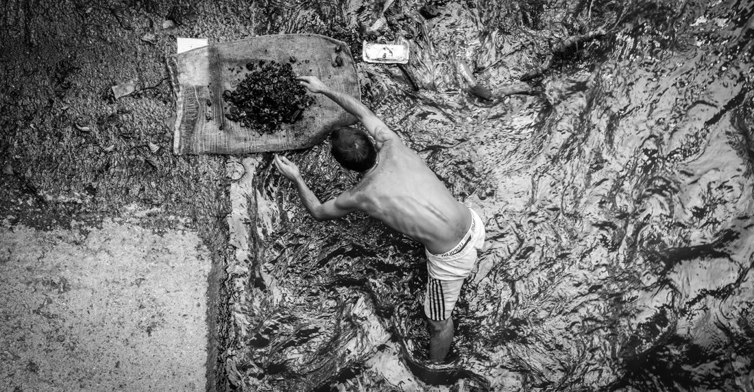 Nada turba a Ángel. Permanece de cuclillas; minutos, quizás horas. Está concentrado. Escarba. Aprieta el cepillo de una escoba con la mano derecha. Lo utiliza para remover la masa negra de sedimentos. Abre la montaña de escombros como si fuese un niño haciendo figuras en la arena. Pero no es arena lo que tiene entre las manos: son despojos, heces, suciedad. Tampoco se halla frente al mar, el caudal que pasa a su lado es el del Guaire, una cloaca de 72 kilómetros de longitud que, ahora resulta, puede contener tesoros.