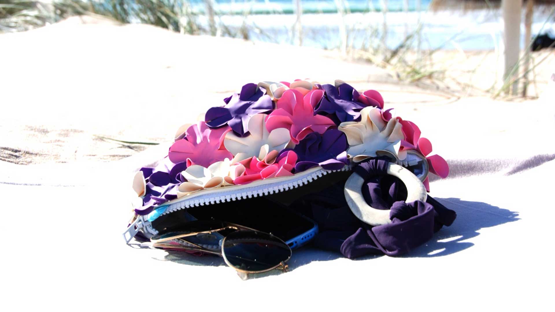 Usar un jardín de flores como gorro de baño, parecía una buena idea en los años 60. En la actualidad es mejor prescindir de este accesorio en la cabeza, por eso la marca SUUIM hizo de un clásico para las abuelitas, un divertido y colorido clutch playero.