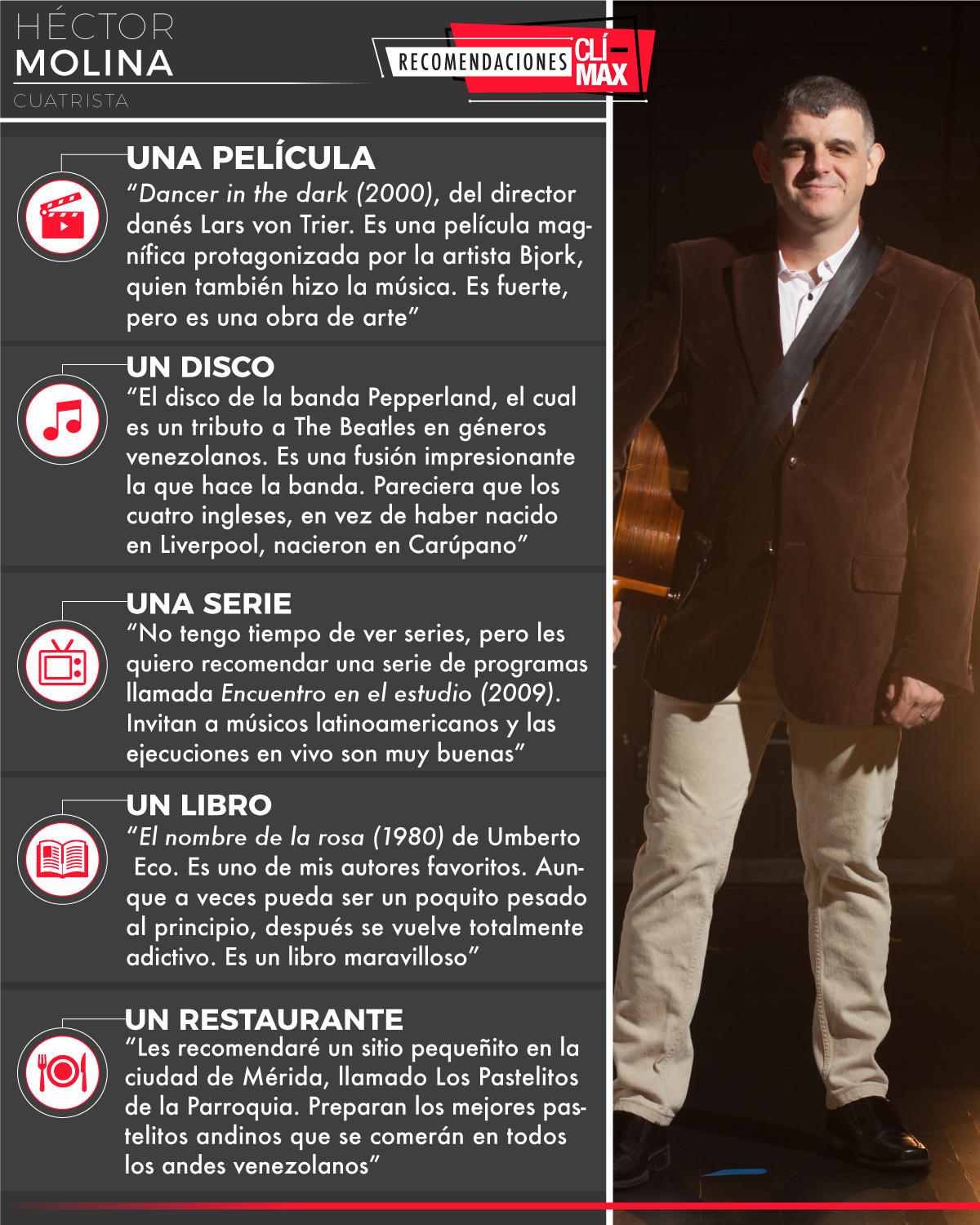 El cuatrista Héctor Molina comparte sus recomendaciones para Clímax.
