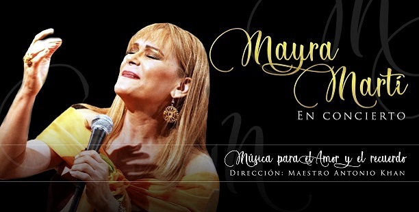 La cantante Mayra Martí, única Voz de Oro y Diamante de Venezuela, estará interpretando lo mejor de su repertorio, compuesto por música venezolana e internacional en un concierto “Para el Amor y el Recuerdo.” La soprano debutó en 1966 en el programa de Renny Ottolina, impactando de inmediato con su hermosa y dulce voz, además de su coloratura y extraordinario rango vocal.