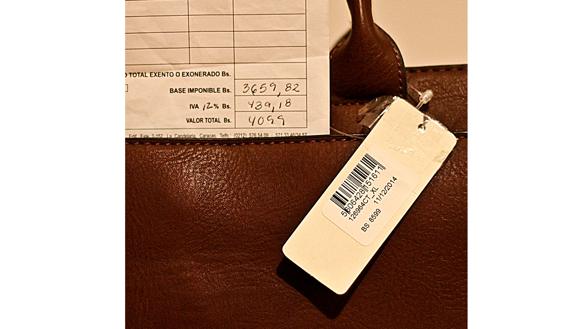 La factura fue hecha a mano, la máquina registradora se estaba actualizando. Una de las vendedoras le comentó: “aproveche porque en nuestras otras tiendas, las del Sambil, Líder y Millenium, ya aumentaron toda la mercancía”. Al mismo tiempo Josefina quedó enganchada con otra cartera, pero piensa en comprarla luego, en todo caso, si el dólar aumenta todos los días uno o dos puntos, qué tanto podrá subir de precio la cartera en dos días.