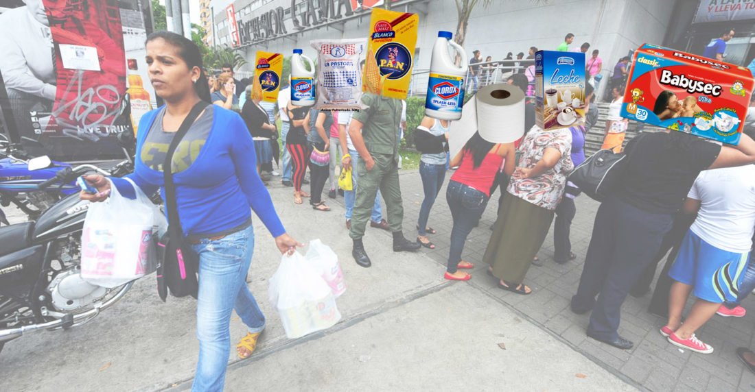 El escenario es este: todos deben hacer colas, al menos quienes quieran comprar y consumir la canasta básica. Cuando de comida se trata, no hay criollo que no le guste la arepa. En 2014, conseguir harina de maíz exigió del mismo rigor que se requiere para hacer trámites en oficinas gubernamentales. Hasta militares hay. Ir al supermercado se convirtió en una especie de maratón: se necesita disciplina, tiempo, agilidad y paciencia. Sin embargo, hay quienes pueden facilitar la odisea. Es simple: “no tienes que hacer cola, pero paga”. También puede optar por hacerla usted mismo y este “ayudante” se hará pasar por un amigo o familiar para que a la hora de comprar pueda llevarse más cantidad de los productos estipulados. Usted gana, él también, aparentemente los dos salen felices —cuando se acostumbran a sobrevivir de esta manera, claro.