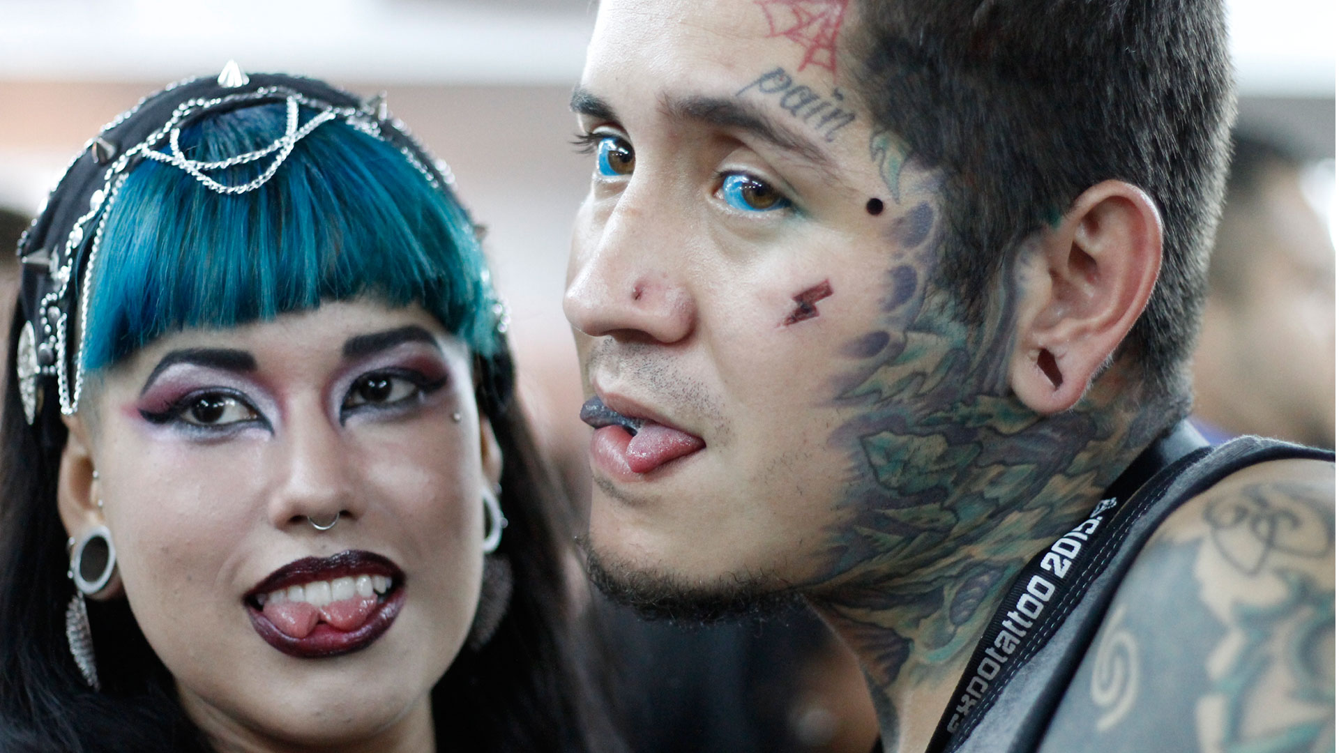 Es sábado, día de gastar la quincena ―en lo que sea, tatuajes y pircings, dolores incluidos. Quienes en la calle son completos extraños aquí son uno más. Se sienten en cofradía. Más bien cómodos entre filos de acero inoxidable, punzones y tinta derramada, orejas estiradas, ojos rayados, miembros y extremidades caricaturizados y hasta descuartizados. Aquí nadie los juzga. Estos adeptos pagan para ver a los artistas que tatúan u horadan carnes con BodyPircieng. Quieren ser como ellos. Y es que se ven tan normales que todo el que no tenga un agujero hecho se vuelve extraño. Ansiosos por ser parte del clan, miles de visitantes se sientan en la silla que los marcará de por vida.